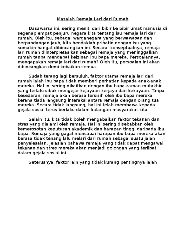 Setiap hari kita membuka lembaran surat khabar mestilah dapat membaca berita tentang remaja lari dari rumah. Karangan Remaja Lari Dari Rumah Koleksi Esei Pam Sem 1 1 Flip Ebook Pages 1 50 Anyflip Anyflip Cara Cara. - Remaja bererti dewasa atau sudah akil baligh.